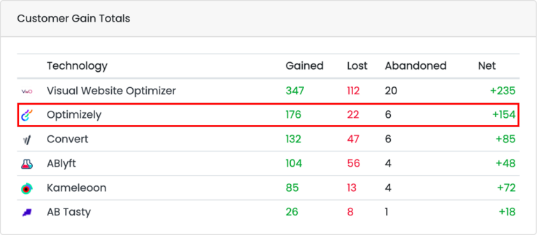 Independent BuiltWith data shows a clear trend in the A/B testing market. While many traditional tools are losing customers, Varify is experiencing massive net growth, especially among former Kameleoon users.