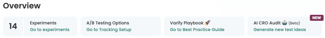 In this article, you will learn where to find the Varify AI CRO Audit, how to start an audit and how to retrieve the results. The AI CRO Audit analyzes any page and provides you with CRO insights, concrete recommendations and 10 test ideas that you can use directly for A/B tests.