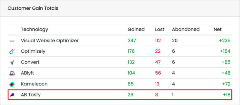 Les données indépendantes de BuiltWith montrent une tendance claire sur le marché de l'A/B testing. Alors que de nombreux outils traditionnels perdent des clients, Varify enregistre justement une croissance parmi les anciens utilisateurs d'AB Tasty.