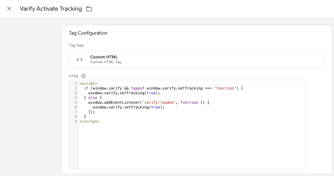 Önemli: Varify Activate Tracking Script'in Google Tag'den sonraki her sayfa görüntülemesinde yüklendiğinden emin olun.